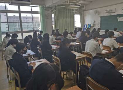 期末テスト3日目の25日、2年生は、国語と社会のテストに挑みました。