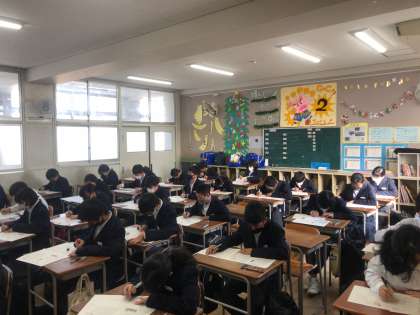 期末テストも最終日となりました。写真は1年生の社会科の様子です。