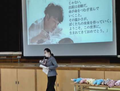 助産師の先生にご来校いただき、受精や出産について、動画などもまじえて、話をしていただきました。