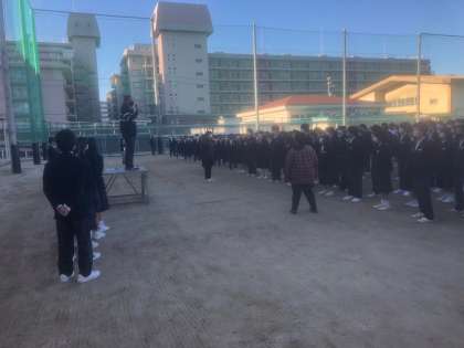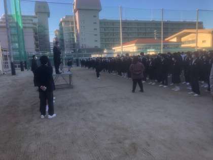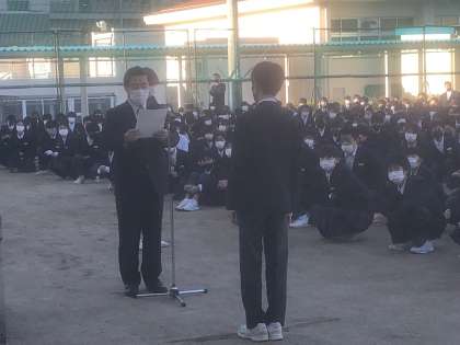 本日の集合態度は、主体的に動いている様子があり良かったです。今後、校長室前に校長ポストを設置します。学校をより良くするために、生徒のみなさんからの提案や相談を入れていただきたいです。『自分たちでいい学校をつくろう』という意欲を持って活用してください。
