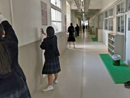 各教室の窓や、エアコンのフィルターや、廊下の壁など、普段はあまり清掃をしないところまできれいにしました。