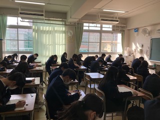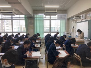 本日は実力テスト2日目です。最後の実力テストで、公立入試にも大きく関わります。みんな真剣に問題を解いています。