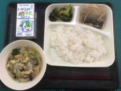 ごはん、牛乳、さばのみそ煮、五目汁、ブロッコリーのごまあえ、でした。