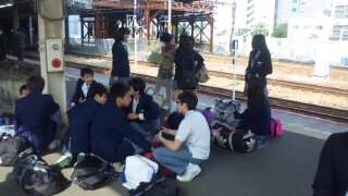 新大阪駅のホームで電車を待っています。 天気は最高です。