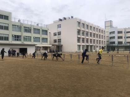 鉄板やハードルなどさまざまな道具を使いながら、練習をしています。寒さに負けず、活動しています。