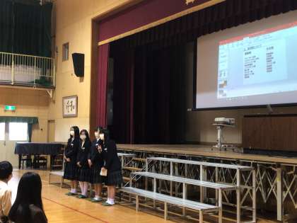 生徒会役員たちも一生懸命、歌島中学校の取り組みや学校生活について紹介していました。