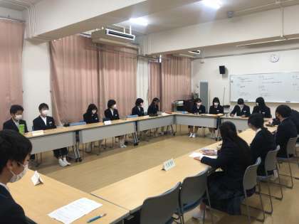 2月25日放課後、1、2年生で生徒議会が行われました。今年度最後の議会では各委員会の報告に加えて、卒業する先輩たちに向けてのメッセージカードの作成を行いました。