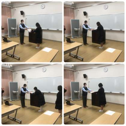 本日、オンラインによる全校集会を行いました。また、表彰も行いました。