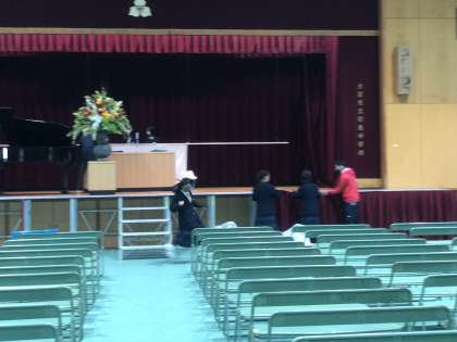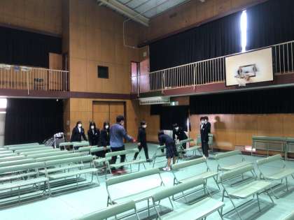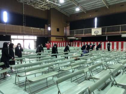 午後は在校生の委員の生徒が残り、椅子や紅白幕などの準備を行っています。