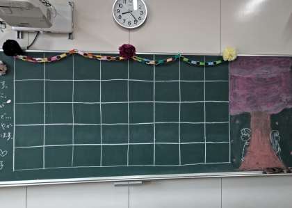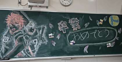 卒業生にお祝いと感謝の気持ちをこめて、1、2年生の美術部と有志の生徒が黒板アートを制作しました。