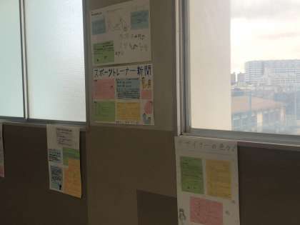廊下にはこれまでグループで作成した壁新聞が掲載されています。