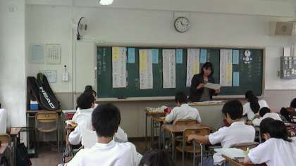 2年3組の教室で数学の授業が、2年6組では国語の授業がありました。