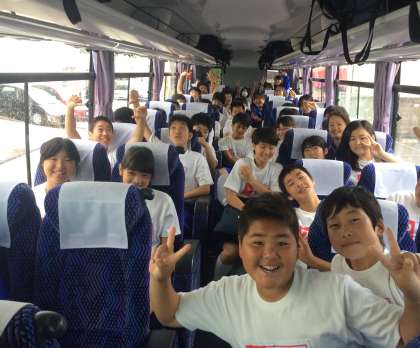 9時過ぎに281名の生徒出発しました。 車内の様子。1号車はみんな元気です!