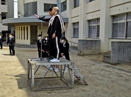 そのあと、1、2年生が受検した漢検(に〜よん漢字道場 Evolution)に合格した代表生徒に、賞状を渡していただきました。マスクごしながらも大いに笑うことができたひとときでした。