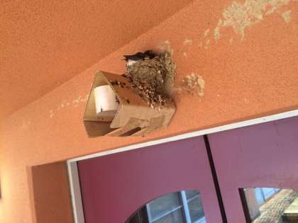 体育館への移動途中に、ツバメが巣を作っているのを発見。 愛らしい姿に笑顔がこぼれます。