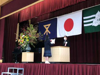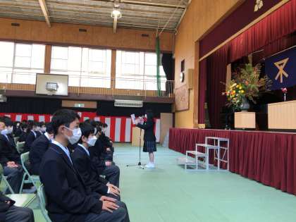 新入生代表「よろこびの言葉」、在校生代表「歓迎の言葉」、1年生職員紹介の様子です。