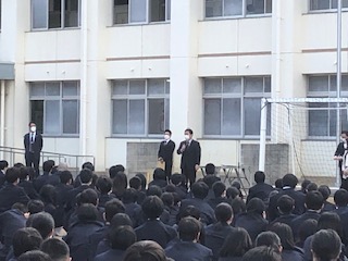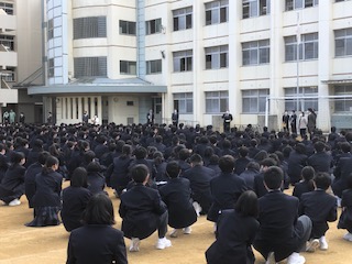 みなさんは今、同じスタートラインに立っています。自分自身に負けず毎日頑張りましょう。キーワードは「当たり前のことが当たり前にできる」です。そして、全員で力を合わせ『安心できる 夢を抱ける 誇りにできる』素晴らしい学校にしていきましょう。