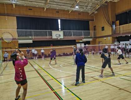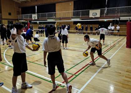 体育館で活動している、バドミントン部、女子バレーボール部、男子バレーボール部です。