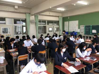 2年生も全校集会を終えて、各教室で担任の先生からのお話のあと、一人一人の行動宣言を考え、書きました。