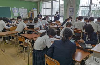 3年生は、13日の総合の時間に修学旅行にむけての取り組みを行いました。初日の班単位でのフィールドワークの計画を立てました。クロームブックも活用して熱心に取り組んでいました。