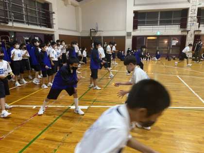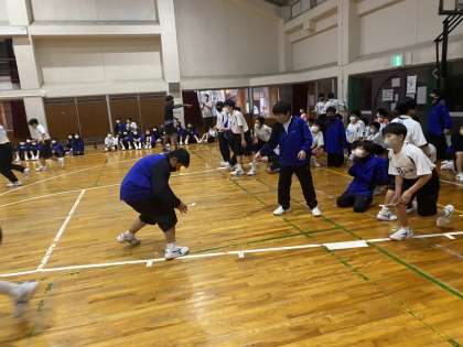 1年生一泊移住:室内オリンピック:クラス男子対抗ピンポン玉リレー