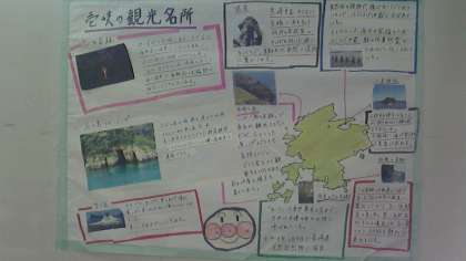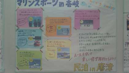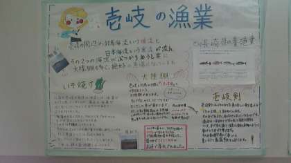 掲示物には漁業・マリンスポーツ・観光地について、写真やイラストをあしらいカラフルな掲示物になっています。