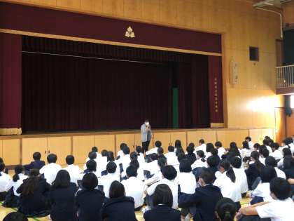 5月18日、2年生は学年集会を行いました。委員会のお話では、テスト1週間前に向けて計画的に勉強に励もうと話しました。
