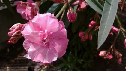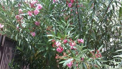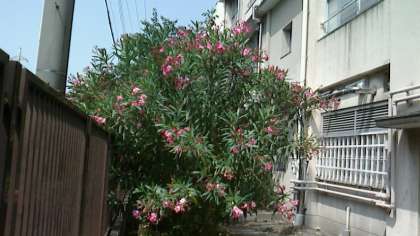 また4号館(2年生の教室)の緑陰遊歩道側にも、大きなキョウチクトウの木があります。