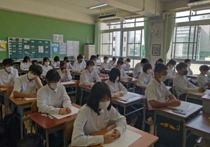 3年生は、10日に第1回実力テストを行いました。一時間目から、国語、社会、数学、理科、英語の順に取り組みました。定期テストより、範囲が広く問題も難しかったようですが、がんばっていました。写真は問題が配付され、開始の合図を待つ、6組のようすです。