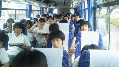 船が小型で船酔防止のため、下船後バス内で昼食になりました♪