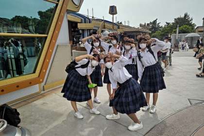 みんなで、お揃いのカチューシャをつけて楽しくまわっています。