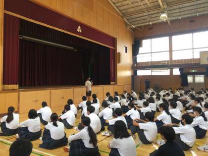 本日、2年生は学年集会を行いました。委員長からは期末テスト、中間よりも良い結果を出せるよう頑張りましょうと話しました。