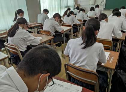 3年生は、1時間目の数学の問題に取り組んでいます。修学旅行から帰ってきて間もありませんが気持ちを切り替えてがんばっています。