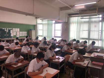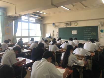 2年生も同じく期末テストが始まりました。1日目は英語、数学、音楽でした。