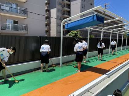 本日放課後、女子バレーボール部がプール掃除を行いました。学年ごとに役割をしっかりすることができていました。