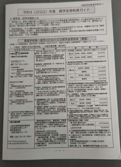 3年生に、奨学金制度ガイド(写真)を配付しました。