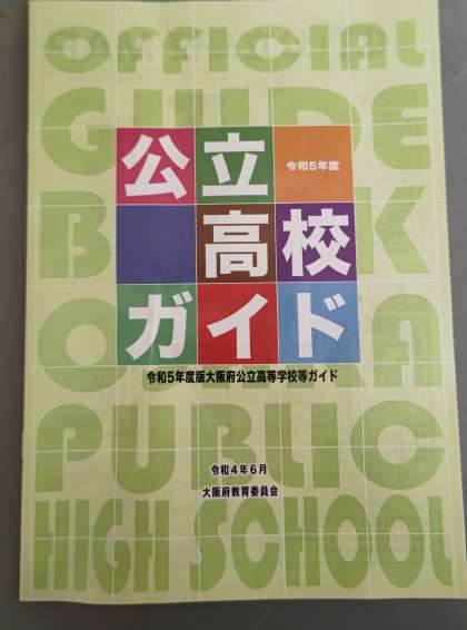 また先日、大阪府教育委員会発行の公立高校ガイド(写真)を配付しています。ぜひご家庭でもお読みください。