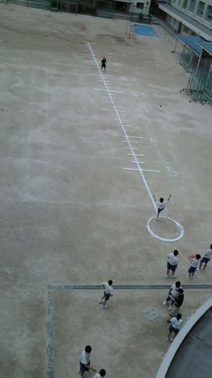 グランドでは体育科のスポーツテスト欠席者を対象とした、ハンドボール投げの測定を行っていました。きれいなフォームで素晴らしい記録の生徒もいました。