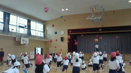 ボールを使用しての授業では、ボールを上方に放り上げている間の、拍手の回数を競いました。優勝者は15回拍手ができました。おみごと!!