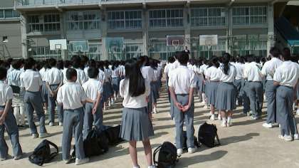 梅雨の谷間のさわやかな朝、全校集会を行いました。