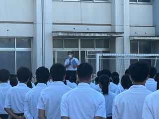 いつも当たり前のことが当たり前にできることが大切なんだと皆さんにお話ししています。その当たり前ができていない人がいると、真面目に頑張って学校生活を送っている人に迷惑をかけることになります。迷惑をかけてしまうようになると楽しい学校にはなりません。真面目にやっている人が楽しい学校でなくなってしまうことは悲しいことでダメなことです。このためにルールがあるわけです。みなさんには果たさなければならない義務や責任があります。その義務や責任をほったらかしにして、自由や権利ばかりを主張することはわがままになります。