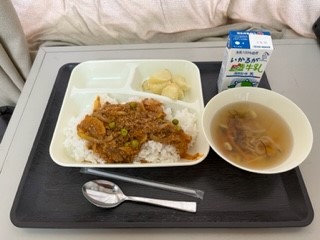 タコライス、牛乳、もずくのスープ、焼きじゃが。