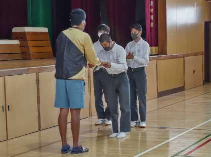 次に体育大会の学年競技の綱引きの表彰を行いました。優勝6組、準優勝1組、3位2組に賞状が渡されました。