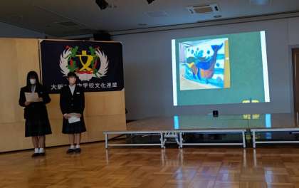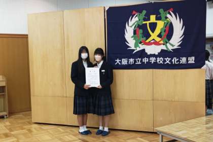 22日に、大阪市中学校総合文化祭の社会科部門の研究発表会が大阪府立咲くやこの花中学校で行われ、本校から3年生の女子2名が参加しました。