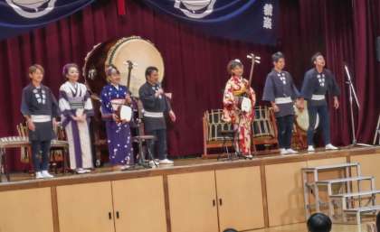 和太鼓など和楽器の演奏を鑑賞しました。迫力満点の演奏を堪能できました。