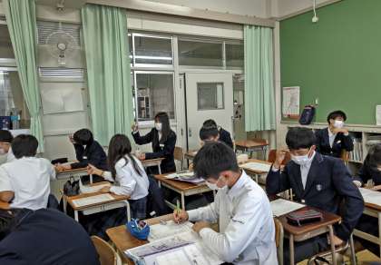 3年間の中学校生活をふりかえって、学んだことや自分をアピールすることを一生懸命考えていました。