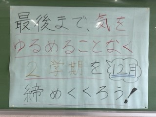 今月の目標は「最後まで気を緩めることなく、2学期を締めくくろう」です。