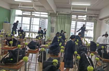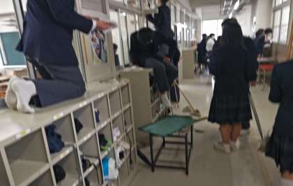 22日の4時間目に全校で大清掃を行いました。窓や壁などもきれいにしました。