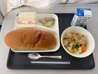 黒糖パン、牛乳、あじのレモンマリネ、てぼ豆のスープ煮、スライスチーズ。