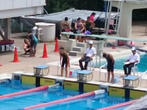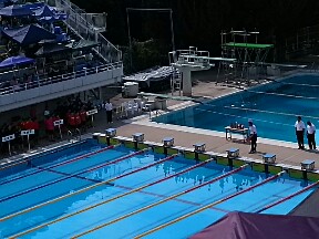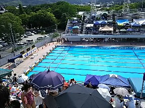 平成27年度近畿中学校総合体育大会の水泳の部が8月7日(金)に奈良県の天理プールで開催されました。写真は晴天で非常に暑い中での開会式の風景です。